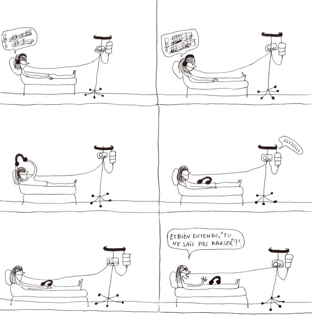 -Chaque matin je me laisse croire que j’irai danser au soir. Comme un leitmotiv. Je bosse en attendant ce moment. Bien souvent, arrivée au soir, je n’ai plus le courage. Je me berne de façon quotidienne. Plus sérieusement, sans ma dose de danse, je pète les plombs. Je vais marcher dans la nuit. Les bals swing sont des instants magiques. Le temps est suspendu. Je vole de bras en bras, je rentre épuisée. Et seule.