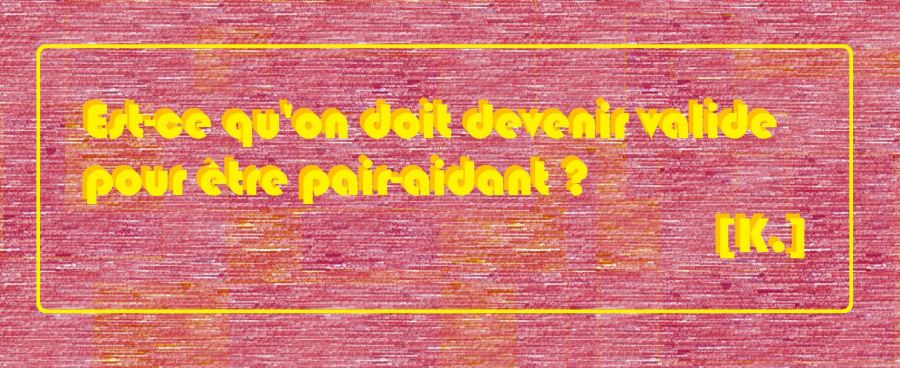 Bref, pour finir, la question que je me pose si je dois résumer c’est : Est-ce qu’on doit devenir valide pour être pair-aidant ?